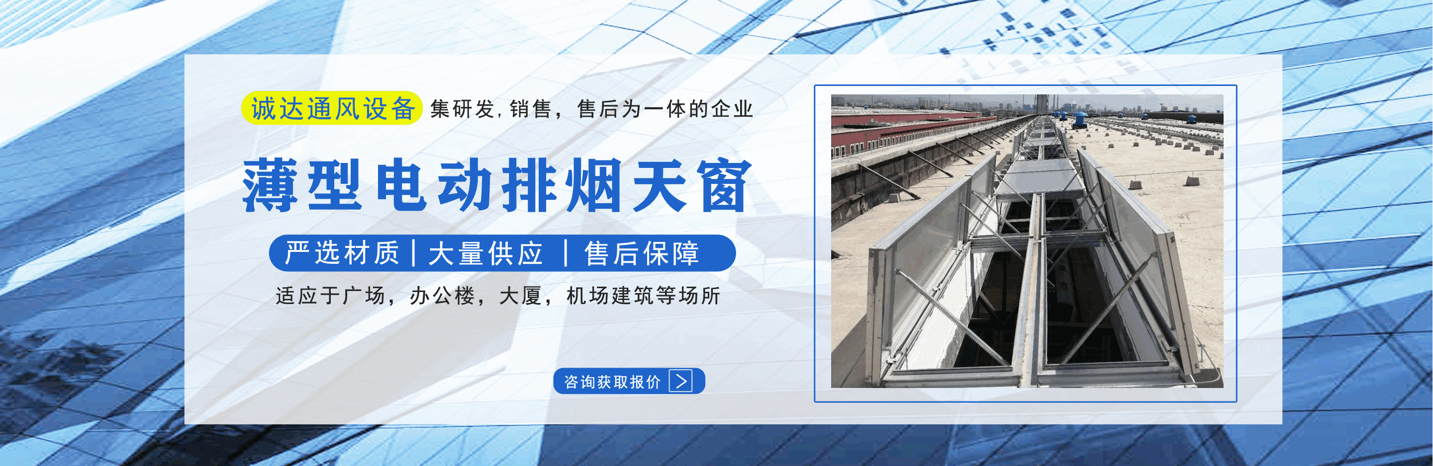 山東誠(chéng)達(dá)通風(fēng)設(shè)備有限公司主營(yíng)排煙天窗,電動(dòng)排煙天窗,消防天窗,一字型消防電動(dòng)排煙天窗,薄型電動(dòng)排煙天窗等產(chǎn)品,質(zhì)量可靠,歡迎前來(lái)咨詢訂購(gòu)! 公司憑借雄厚的實(shí)力,豐富齊全的規(guī)格品種,完善的質(zhì)量保證,合理的價(jià)格,優(yōu)質(zhì)的服務(wù),不斷地受到新老用戶及業(yè)內(nèi)人士的肯定和信任,我們本著及用戶之所及,想用戶之所想的服務(wù)宗旨不斷地拼搏,進(jìn)取! 公司真誠(chéng)的歡迎社會(huì)各界朋友蒞臨本公司參觀考察,同時(shí)也非常感謝所有新老客戶的信賴和支持。...
